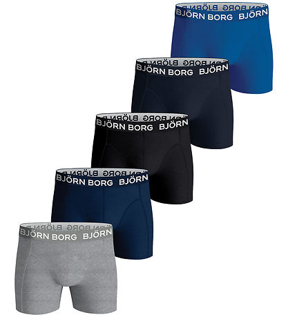 Stijlvolle Björn Borg boxershorts zwart, grijs en blauw tinten verkocht in een 5-pack, ontworpen met een brede elastische rand met logo. Praktische en comfortabele pasvorm, perfect voor dagelijks gebruik.
