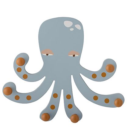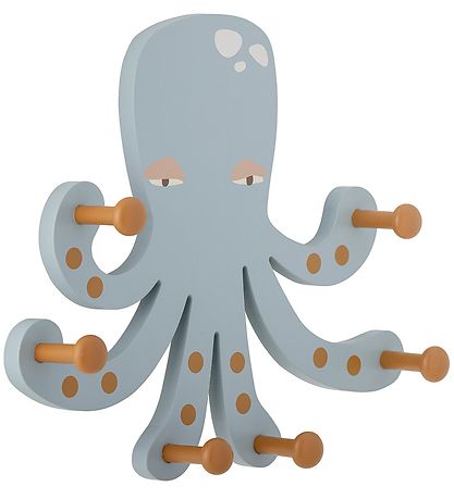 Smart Bloomingville Mini hout jassenrek, ontworpen en beschilderd als een lichtblauw inktvis met bruin stippen.