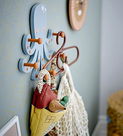 De Bloomingville Mini kapstok heeft wandhaken aan de uiteinden van de zes armen van de octopus en heeft een mooi ontwerp dat zowel de kinderkamer als andere kamers in huis zal sieren.