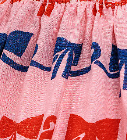Stoere Bobo Choses top in roze met een allover print van strikjes in de kleuren blauw en rood.