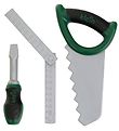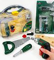 De Bosch Mini speelgoedgereedschapsriem bevat een op batterijen werkende schroevendraaier met realistische bewegingen. De gereedschapsriem bevat ook de volgende onderdelen: