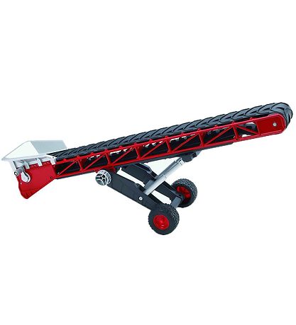 Smart Bruder werkmachine in de vorm van een lopende band. De werkmachine heeft een rood- wit kleurenthema en lijkt volledig op het echte werk op schaal 1:16.