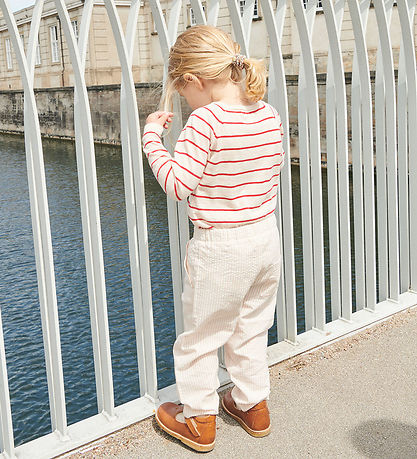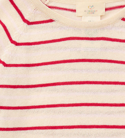 Prachtige blouse van Copenhagen Colors in beige met rode en licht roze strepen. De Blouse heeft een klassieke, lichte pasvorm, waardoor hij comfortabel is voor dagelijks gebruik en perfect is voor warme dagen.