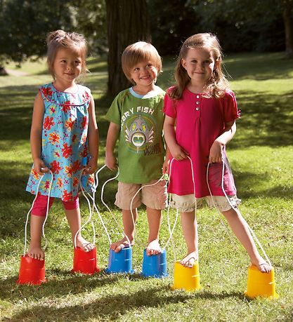 Door te spelen met lopende emmers wordt het zelfvertrouwen, het evenwichtsvermogen en de lichamelijke ontwikkeling van het kind verbeterd. Houd er echter rekening mee dat het speelgoed niet geschikt is voor kinderen jonger dan 3 jaar.