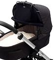 Praktische Dooky kinderwagenhoes in zwart met een print van takken en bladen in bruin en beige.