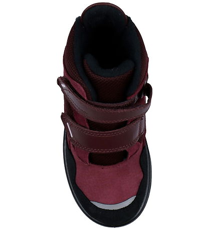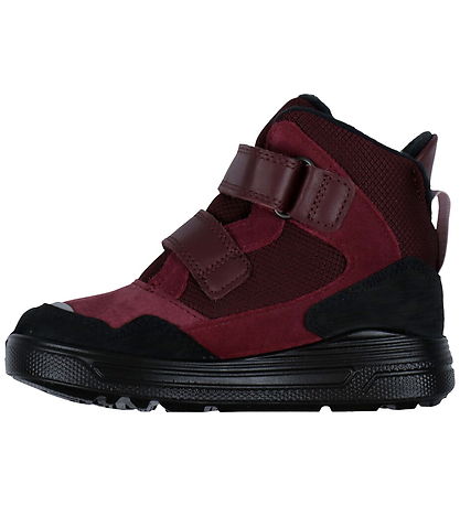 Prachtige Ecco winterlaarzen in donkerroze nubuck en textiel met zwarte details en reflecterende details.