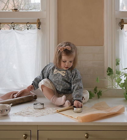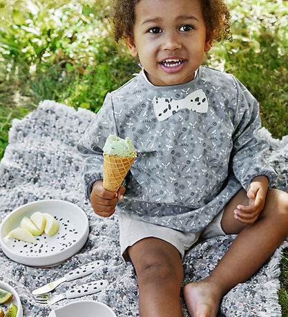 Het Elodie Details schort heeft lange mouwen met smalle elastische randen. Het Schort wordt bij de nek gesloten en versteld met klittenband, ook hier zit een bandje om het schort op te hangen als het moet drogen.
