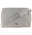 Smart Emporio Armani luiertas van grijs nylon, met een eenvoudig en stijlvol ontwerp. Op de voorkant bevindt zich een klein, zilverkleurige metalen badge met het Armani- logo.