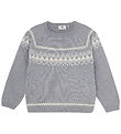 Mooi blouse van En Fant met op de voorkant een print van een grijs beer met een rood babymuts, zwarte bril en een lichtblauw rugzak, die op het punt staat er met een parachute uit te springen.