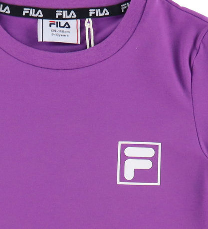 Smart Fila t-shirt in paars en op de linkerkant is een wit logo gedrukt.
