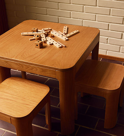 De Flexa tafel heeft vier benen en is vierkant van vorm met afgeronde hoeken, wat zorgt voor een eenvoudig en minimalistisch design.