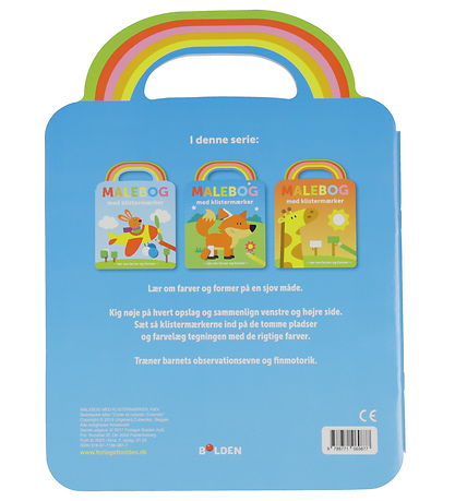 Het kleurboek van Forlaget Bolden heeft 24 pagina's met gedeeltelijk gekleurde illustraties, die kunnen worden ingekleurd en versierd met de meegeleverde stickers. Het Kleurboek leert kinderen over kleuren en vormen.