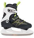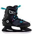 De schaatsen sluit af met zowel een elastisch koord, een klittenband als een kunststof band, zodat ze gemakkelijk aan en uit te trekken zijn.