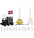 De Verjaardagstrein heeft in twee van de kleine speelfiguren plaats voor twee kaarsen, terwijl in twee andere speelfiguren kleine gaatjes zijn gemaakt voor de cijfers en de verjaardagsvlag.