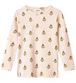Mooi Lil' Atelier blouse met een gestructureerd oppervlak in een warme, bruin kleur. De Blouse heeft lange mouwen en een rond hals, wat zorgt voor een klassieke look. Aan de voorkant zit een praktisch zakje, dat in het ontwerp is verwerkt. De geribte kanten aan de mouwen en onderkant geven de blouse extra details.