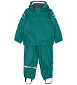De Regenbroek heeft verstelbare elastische banden die aan de voorkant met drukknopen te openen zijn. Aan de zijkanten zijn voorzien van elastische randen en de broekspijpen hebben smalle elastische randen met verstelbare, afneembare rubberen banden om onder de laarzen te dragen.