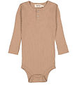 Elegante MarMar romper met lange mouwen, uitgevoerd in het antraciet grijs. De Romper heeft een eenvoudige en stijlvolle structuur met een rond halslijn en fijne geribte kanten aan de polsen en onderkant.