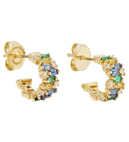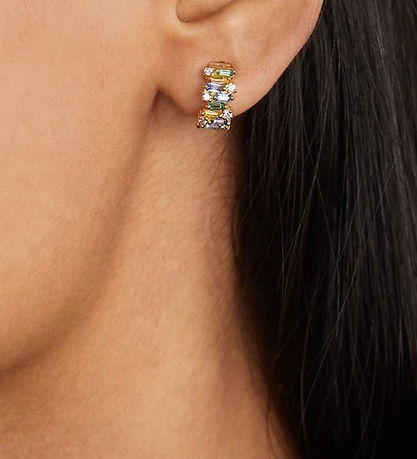 Fijne MillaVanilla oorbellen in verguld sterling zilver met bloemen in gekleurde glittersteen.