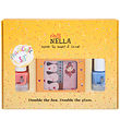 Mooi Miss Nella set bestaande uit een roze lippenbalsem en een roze nagellak met glitter.
