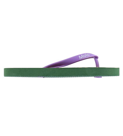 Molo slippers een smal rubberen bandje om de voet met een bandje tussen de tenen. De zolen zijn gemaakt van een lichtgewicht materiaal.