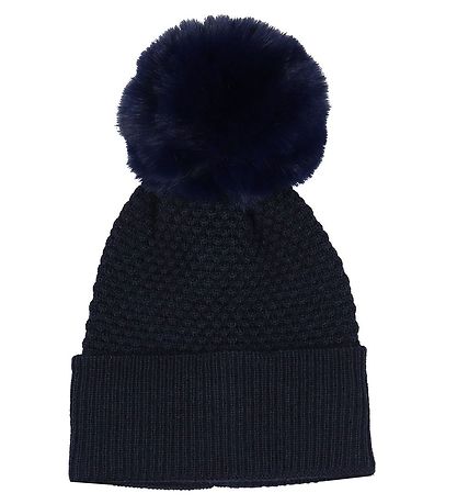 Mooi MP muts in het navy gebreid met een mooi gestippeld. Op de voorkant zit een stoffen label met "MP" in bruin.