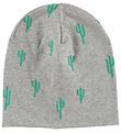 Mooi MP muts in gevlekt lichtbruin met een patroon in zwart en wit, en aan de bovenkant een groot kwastje van kunstbont.