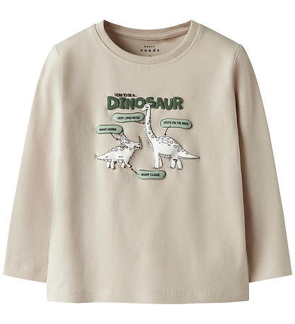 Smart Name It blouse in een beige kleur met een dinosaurusprint. De Blouse heeft lange mouwen en een klassieke rond hals, wat zorgt voor een eenvoudige en stijlvolle look. Name It creëert een interessant ontwerp dat de aandacht trekt met zijn leuke thema.