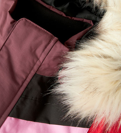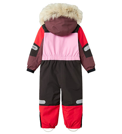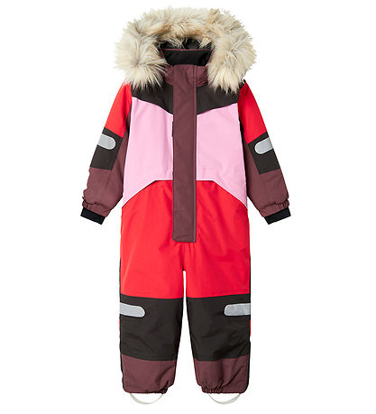 Coole Name It sneeuwpak in een kleurencombinatie van roze, bordeaux, rood en zwart.