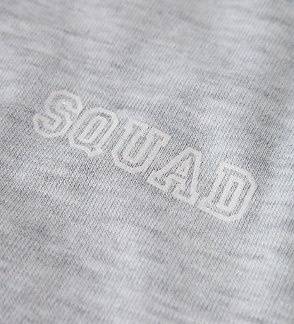 Elegante Name It sweatshirt in licht gevlekt grijs met een discrete "Squad" print in wit glitter op de linkerborst, voor een eenvoudige en stijlvolle look.