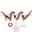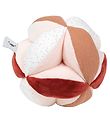 Good Nattou activiteitenbal in roze, bruin en donkerroze plooi en onderdelen in wit, met kleine stippen in groen en geel.