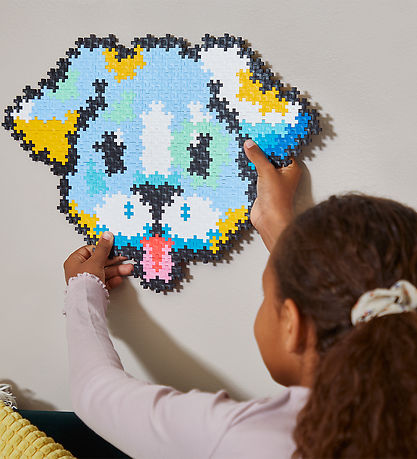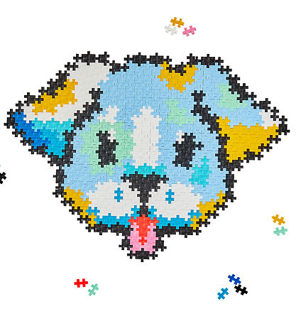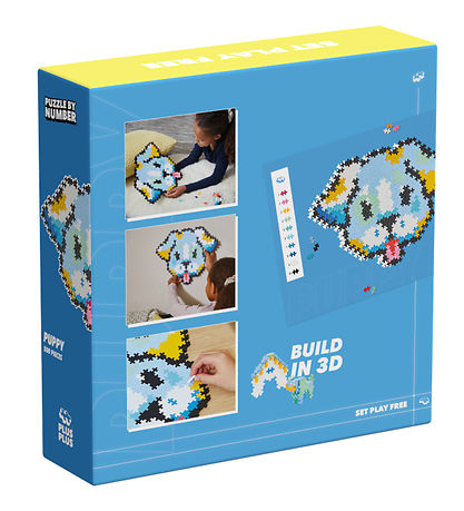 Leuke Plus-Plus puzzel met 500 bouwblokken in blauw, gele en roze tinten. Het Set bevat een sjabloon voor een puppy die kan worden gebouwd door kleuren en nummers te matchen. Als de Puzzel klaar is, kan deze in de kamer worden opgehangen. Er is geen Lijm of strijkwerk voor nodig.
