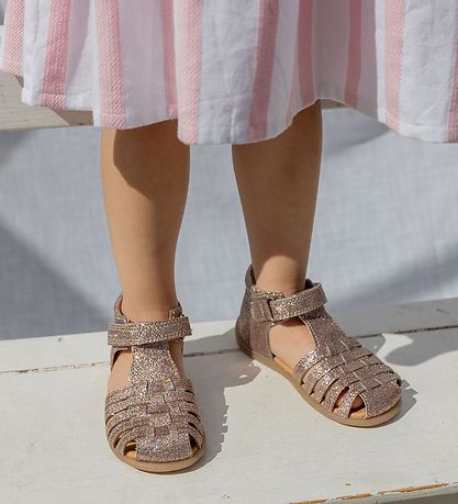 De Pom Pom sandalen zijn een gesloten model en hebben een klittenbandsluiting over de wreef, waardoor het kind de sandalen gemakkelijk kan verstellen. Binnenin zijn ze met leer gevoerd en aan de onderkant zit een zachte leren zool. De buitenzool is gemaakt van flexibel rubber met een praktisch patroon onder de onderkant dat zorgt voor een goede grip.