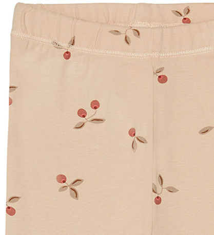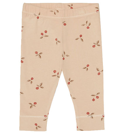Schattige Popirol leggings in roze met een allover print van veenbessen in rood en groen tinten.