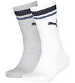 Schattige Puma sokken in een 2-pack in wit en zwart met logo's in respectievelijk zwart en wit, en met een golvende bovenrand. Wanneer de bovenrand wordt omgevouwen, komt er aan de binnenkant een discrete glitterstrepen tevoorschijn.