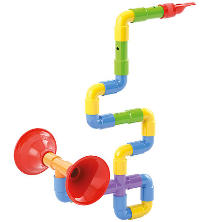 Coole Quercetti saxofoon in 24 onderdelen met leuke kleuren, die het kind zelf moet bouwen en op verschillende manieren in elkaar te zetten is.
