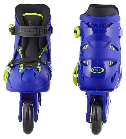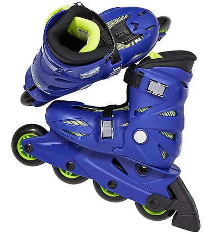 Stijlvolle Roces rolschaatsen in blauw en limoengroen met zwarte details