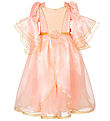 Schattig Souza kostuum van een tijger in beige, zacht polyester met bruin strepen. De Jurk heeft wit kunstbont in de arm en nekopening en op de buik, en de rok bestaat uit beige tule. Op de linkermouw zit een geborduurd, rood kroon, en aan de achterkant zit een klein staartje aan de rok. De Hoofdband heeft schattige tijgeroren met een wit midden.