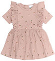 Charmante romper van The New Siblings in een dusty roze met een allover bloemenprint in groen, beige en roze en een mooie geribbelde structuur.