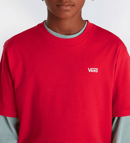 Stijlvol Vans t-shirt in een doorzichtig rood. T-shirt heeft een eenvoudig ontwerp met het iconische Vans logo op de borst. Het Vans t-shirt heeft een klassieke rond hals en korte mouwen, wat het een eenvoudige en tijdloze uitstraling geeft.