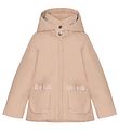 De zomerjas Ver de Terre heeft een afneembare muts die sluit met zilverkleurige drukknoppen en sluit voor de kin met twee zilverkleurige drukknoppen. Als de capuchon is verwijderd, kun je een mooi kraag in de halsopening vouwen. De Jas heeft een mooi A-snit met een schattige plooi op de rug.
