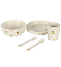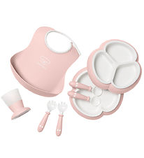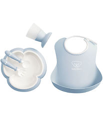 Sommige bestek-set sets bevatten alleen een beker en een borden, terwijl andere ook een kom, een lepel en/of een vork hebben. Er zijn ook bestek-set met een drinkoefenbeker.