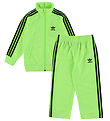 adidas Originals cardigan har lange ermer og åpnes foran med en gjennomgående glidelås med hakebeskytter og innvendig vindstolpe. Den har høy hals og ribbekanter ved erme- og midjeåpningene, samt skjulte glidelåslommer på hver side foran. Treningsbuksene har en bred elastisk kant i midjen med justerbare knyting på innsiden, noe som sikrer en god passform.