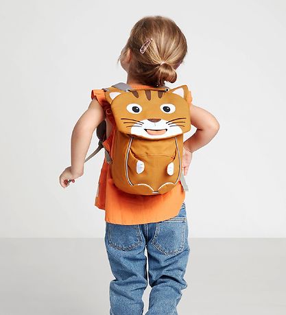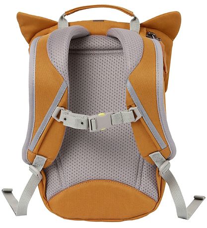 Ryggsekken har en polstret rygg og polstrede skulderstropper, som er dekket med pustende mesh. Skulderstroppene kan justeres i lengden, og det er en praktisk, justerbar bryststropp, som sørger for at vesken sitter godt og komfortabelt på den lille. Det er en reflekslist rundt magen og på toppen er det et smalt håndtak, slik at den kan bæres både i hånden og over skuldrene.