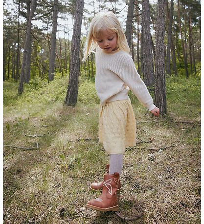 Vinterskoene har en naturgummi med volangdesign som sikrer godt fotfeste.
