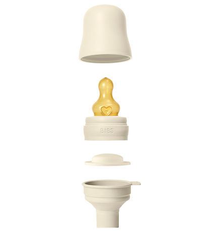 Deilig BIBS babyflaske i hvit med en kapasitet på 270 ml. Babyflasken består av flere utskiftbare deler:
