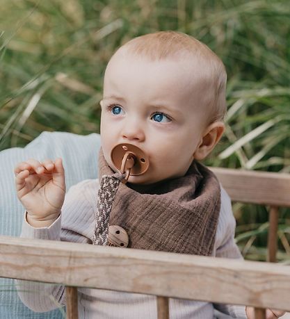 Søt BIBS smokkesnor i brun med beige detaljer.
