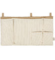 Cam Cam Copenhagen sengelomme har to store lommer, og på utsiden av den ene lommen er det ytterligere to mindre lommer. Sengelommen kan brukes til f.eks. smokker, flasker eller våtservietter, slik at de alltid er for hånden. Sengelommen Fast til sprinkelsengen eller lekegrindens stenger med borrelås.