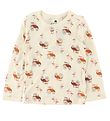 Vakker CeLaVi genser i hvit med et allover trykk av grønne og brune blomster.