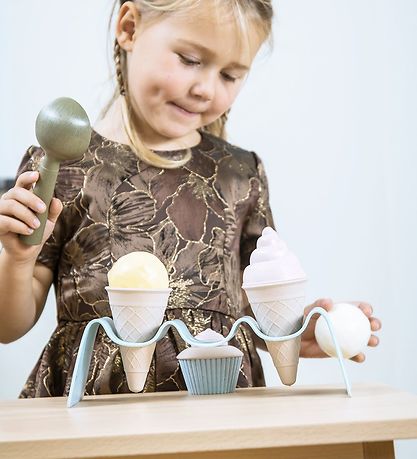 Dantoy iskremsettet er perfekt i den lille iskrembutikk. Iskremsettet kan lekes med både inne og ute. Gjennom rollelek utvikles barnets fantasi, hånd/øye-koordinasjon, sosiale og finmotoriske ferdigheter.