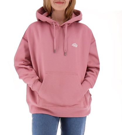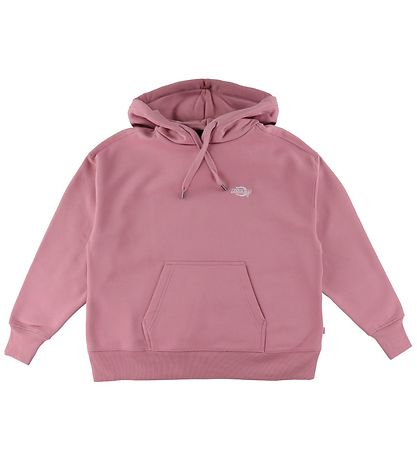 Fin Dickies hettegenser i ensfarget rosa svette med en liten, hvit logo brodert på venstre side.